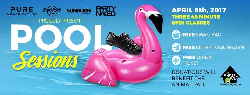 Pure will host three 45 minute spin classes from 9am to noon. Members of the public can purchase a $35 event ticket at www.purestudio.com. All participants will receive a loaded swag bag with free tickets to the SUNBURN event, a free drink ticket, and a chance to win killer prizes from workout outfits to bathing suits, and much more!